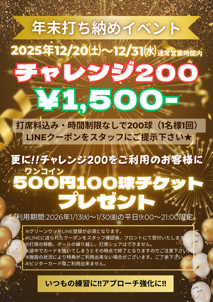 2025年打ち納めイベント!!LINE会員限定★チャレンジ200!!