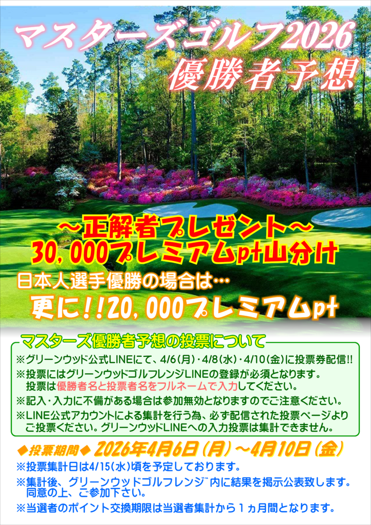 マスターズ2026🏌️優勝者予想を開催します⛳